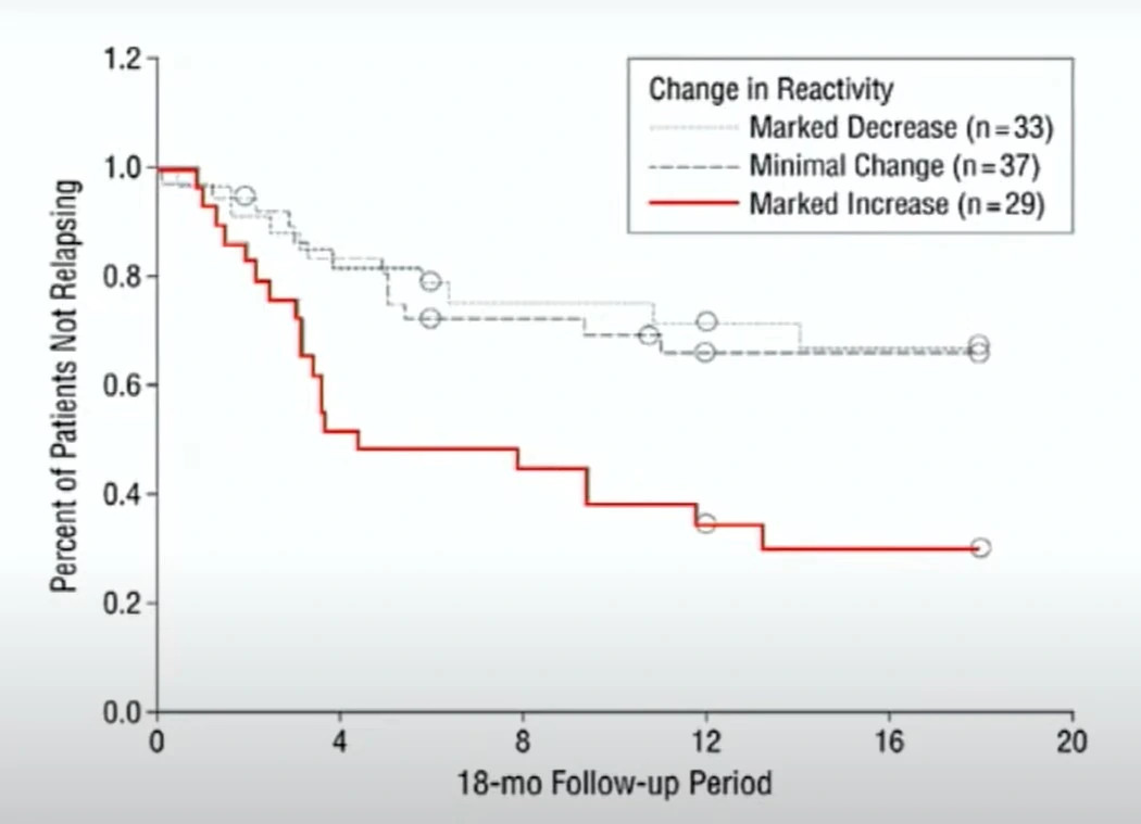 Následující grafy zobrazují pokles relapsujích pacientů a změny v mozkové kůře při MBCT: